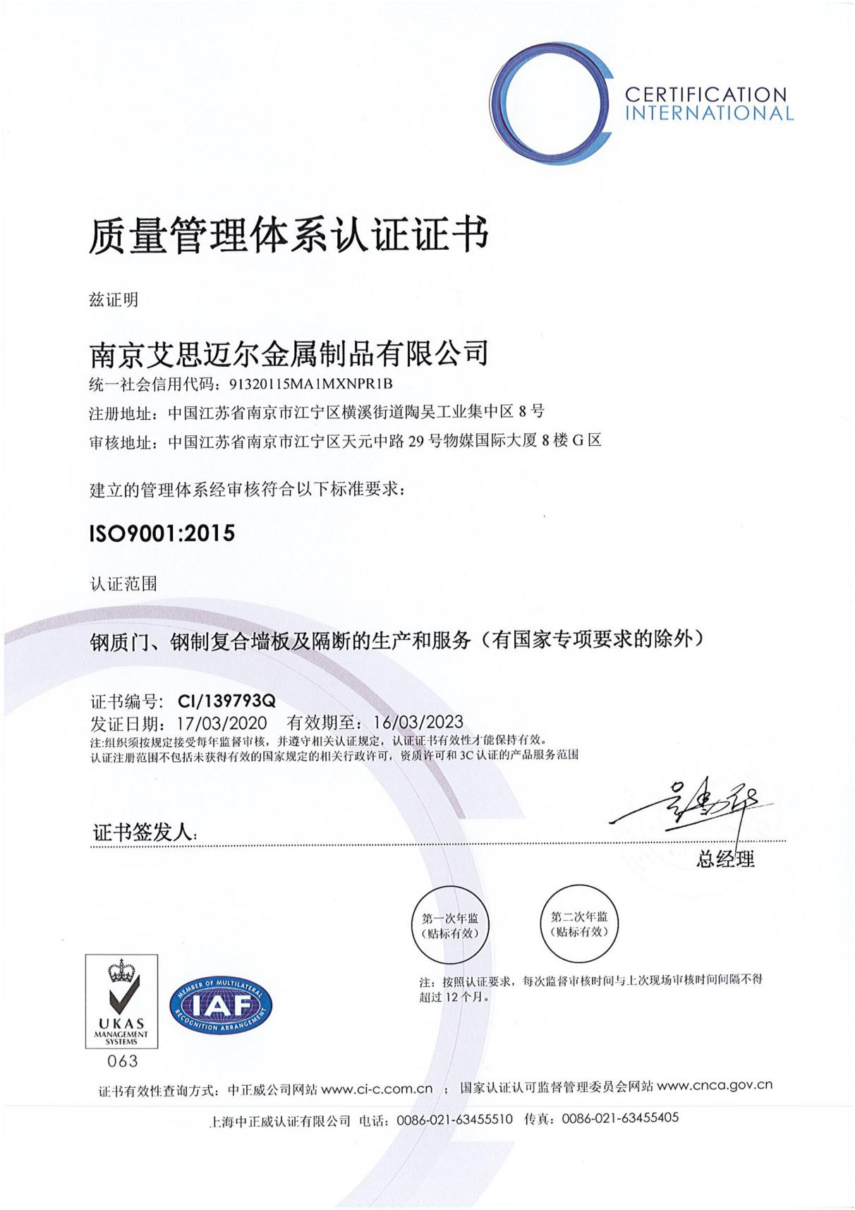 ? 艾思邁爾以嚴謹務(wù)實(shí)的態(tài)度已經(jīng)通過(guò)ISO9001、ISO14001、ISO45001國際質(zhì)量管理體系認證。